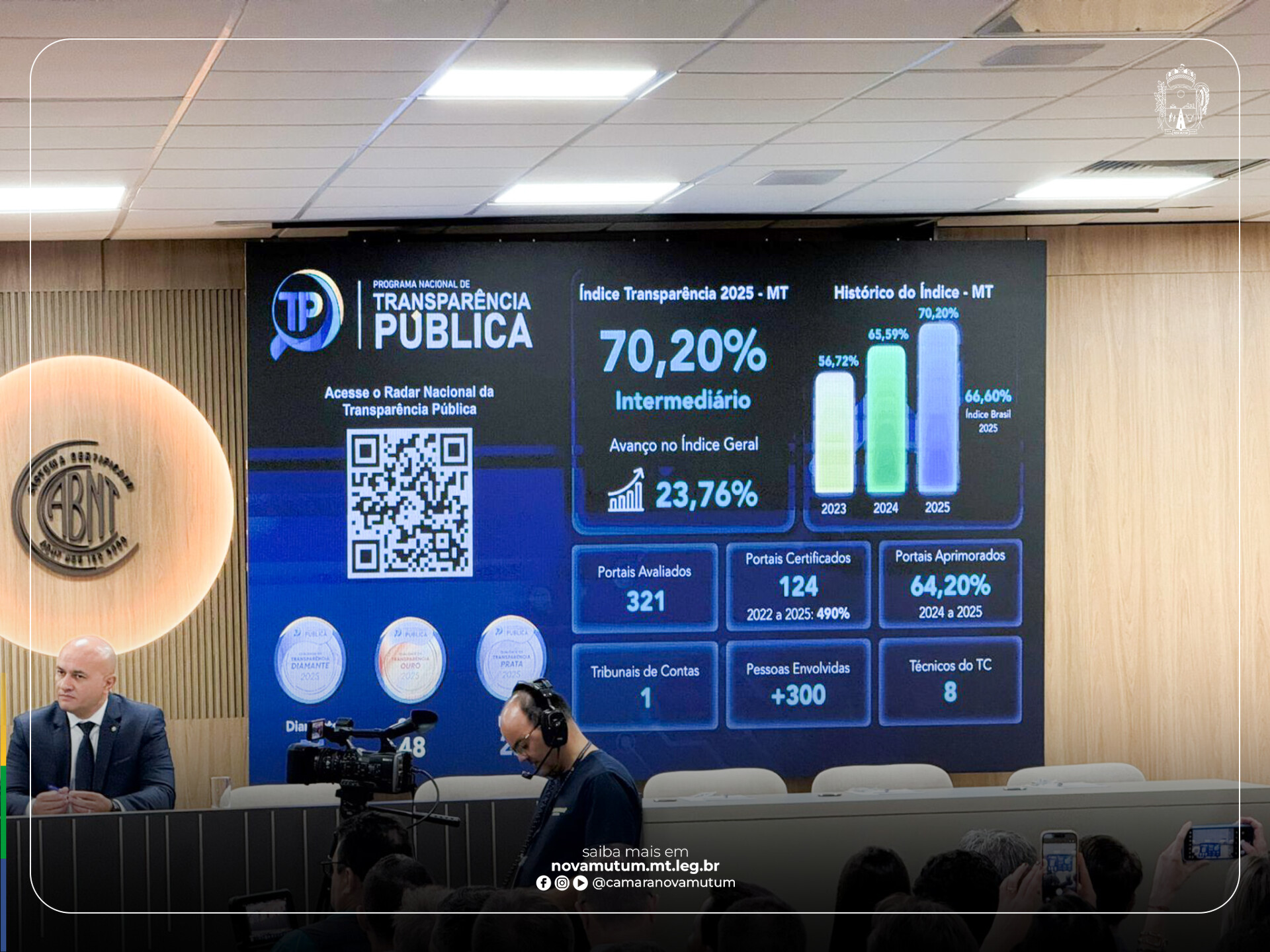 A entrega dos selos integra uma iniciativa nacional liderada pela Associação dos Membros dos Tribunais de Contas do Brasil (Atricon), com validação local realizada pelo TCE-MT. No total, 124 instituições mato-grossenses foram certificadas, sendo 54 com Selo Diamante, 48 com Ouro e 22 com Prata. A Câmara de Nova Mutum se junta a um seleto grupo de legislativos municipais reconhecidos por sua excelência na divulgação de dados públicos.