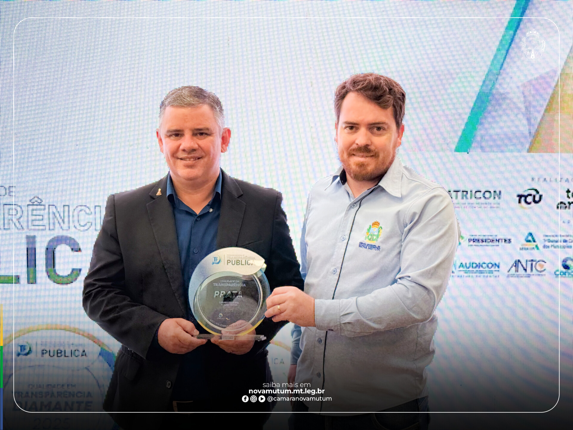 A Câmara Municipal de Nova Mutum atingiu um importante marco na gestão pública ao receber, nesta quarta-feira (10), o Selo Prata do Programa Nacional de Transparência Pública (PNTP), concedido pelo Tribunal de Contas do Estado de Mato Grosso (TCE-MT). A certificação reconhece o compromisso da Casa com a prestação de contas e o acesso da população à informação. O presidente da Casa, Lucas Badan Faria (UNIÃO BRASIL), acompanhado do diretor-geral George Murilo Oro, esteve em Cuiabá para receber o certificado durante solenidade no auditório da Escola Superior de Contas.