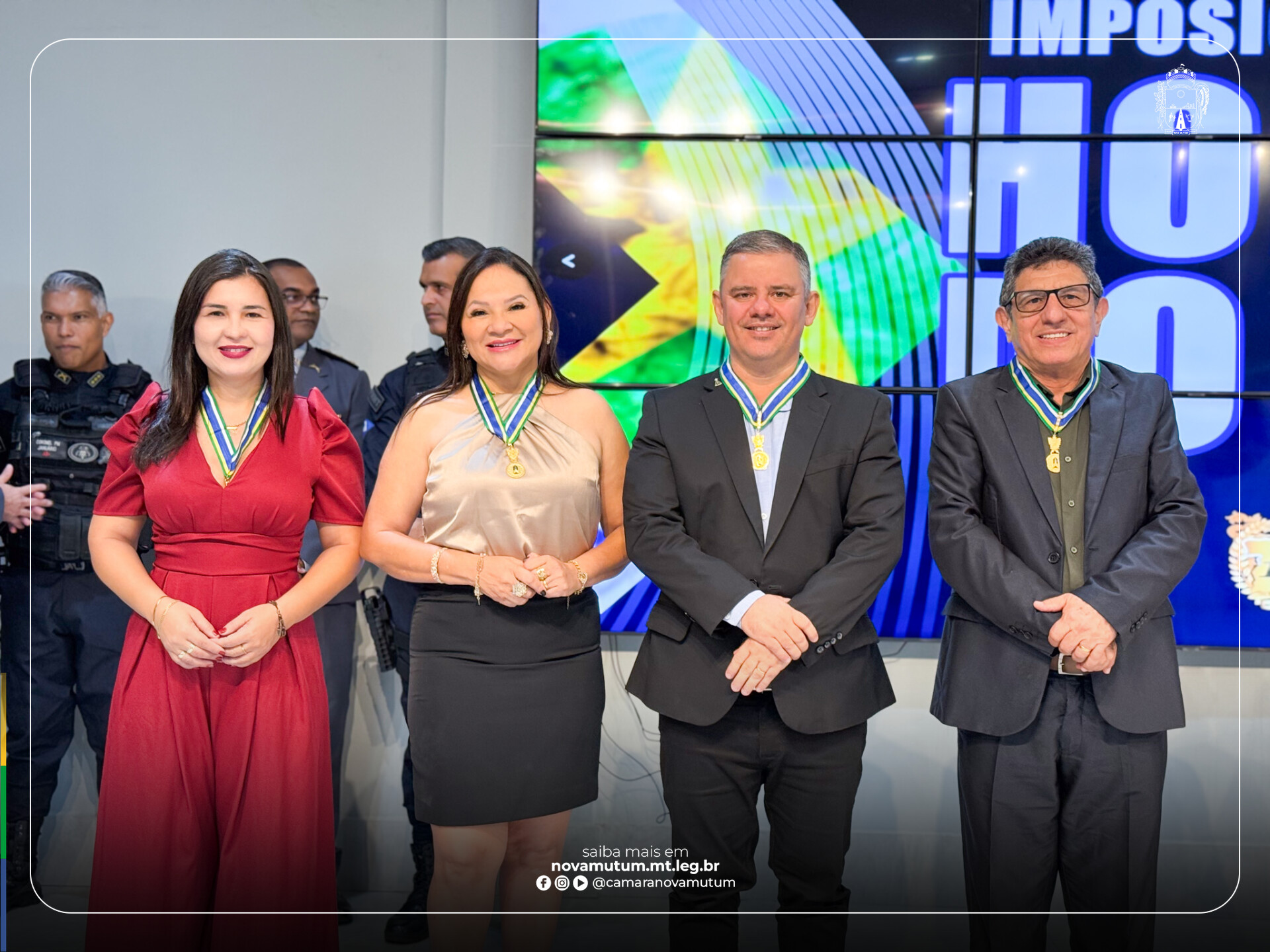 Representando o Legislativo mutuense, o presidente Lucas Badan Faria (União Brasil) que recebeu a honraria ao lado dos vereadores Maciel Sousa (Republicanos), José da Paixão (União Brasil), Altair Albuquerque (PP), Jaiane Santos (PP), Beatriz Killer (União Brasil) e Lurdes Costa Marques (Republicanos).