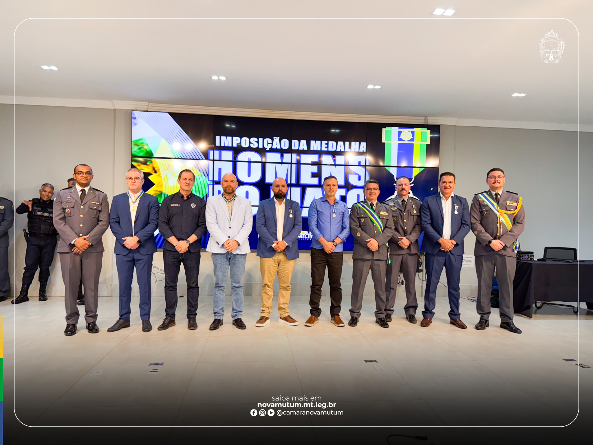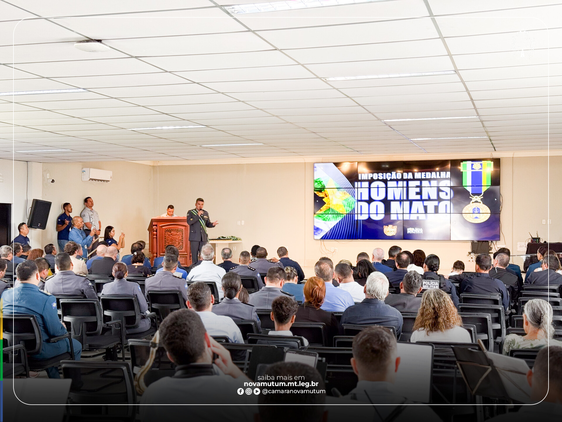 A Câmara de Vereadores de Nova Mutum marcou presença na solenidade de entrega da medalha Homens do Mato, realizada nesta quarta-feira (3), no auditório do Comando-Geral da Polícia Militar de Mato Grosso, em Cuiabá.