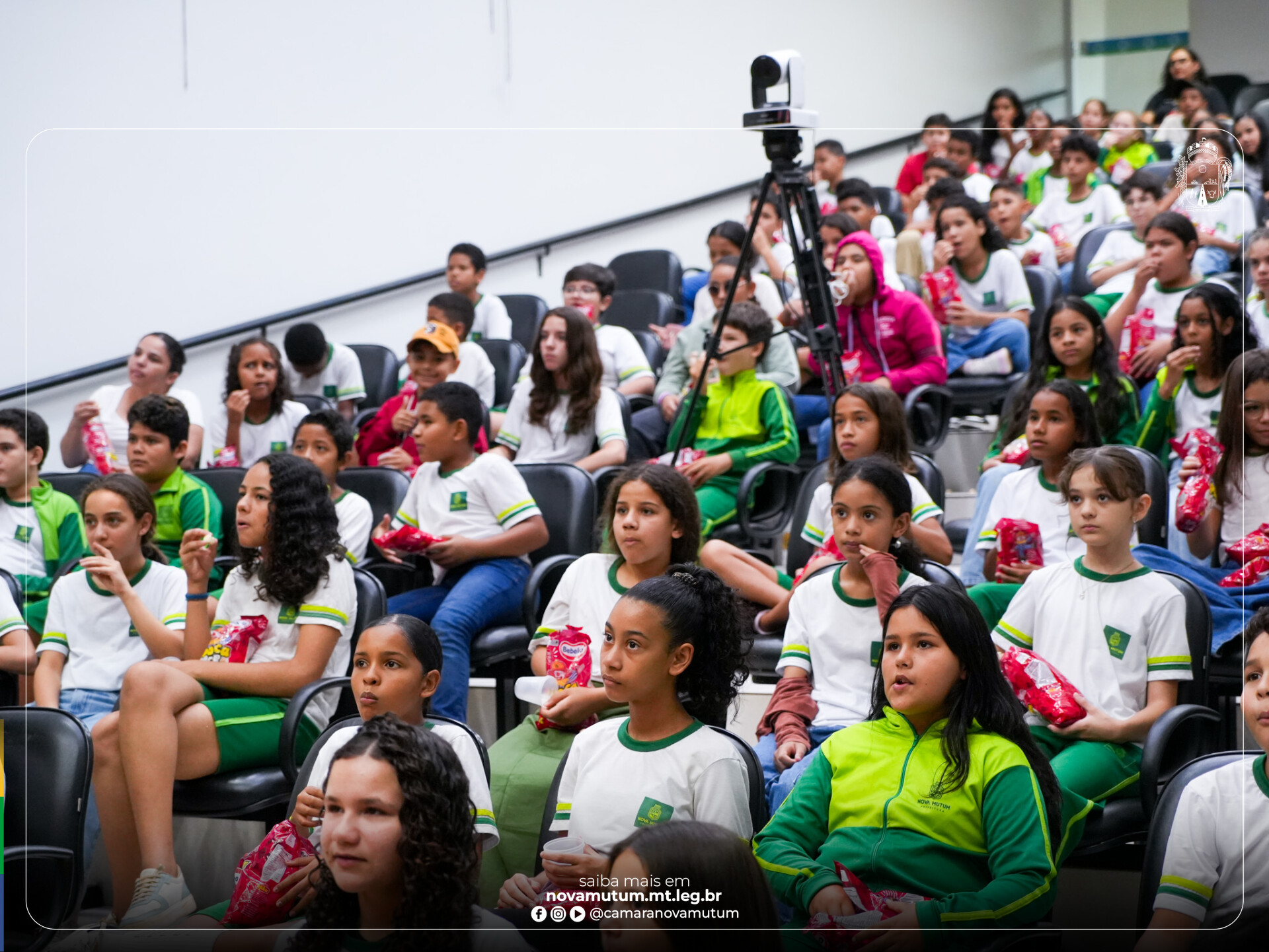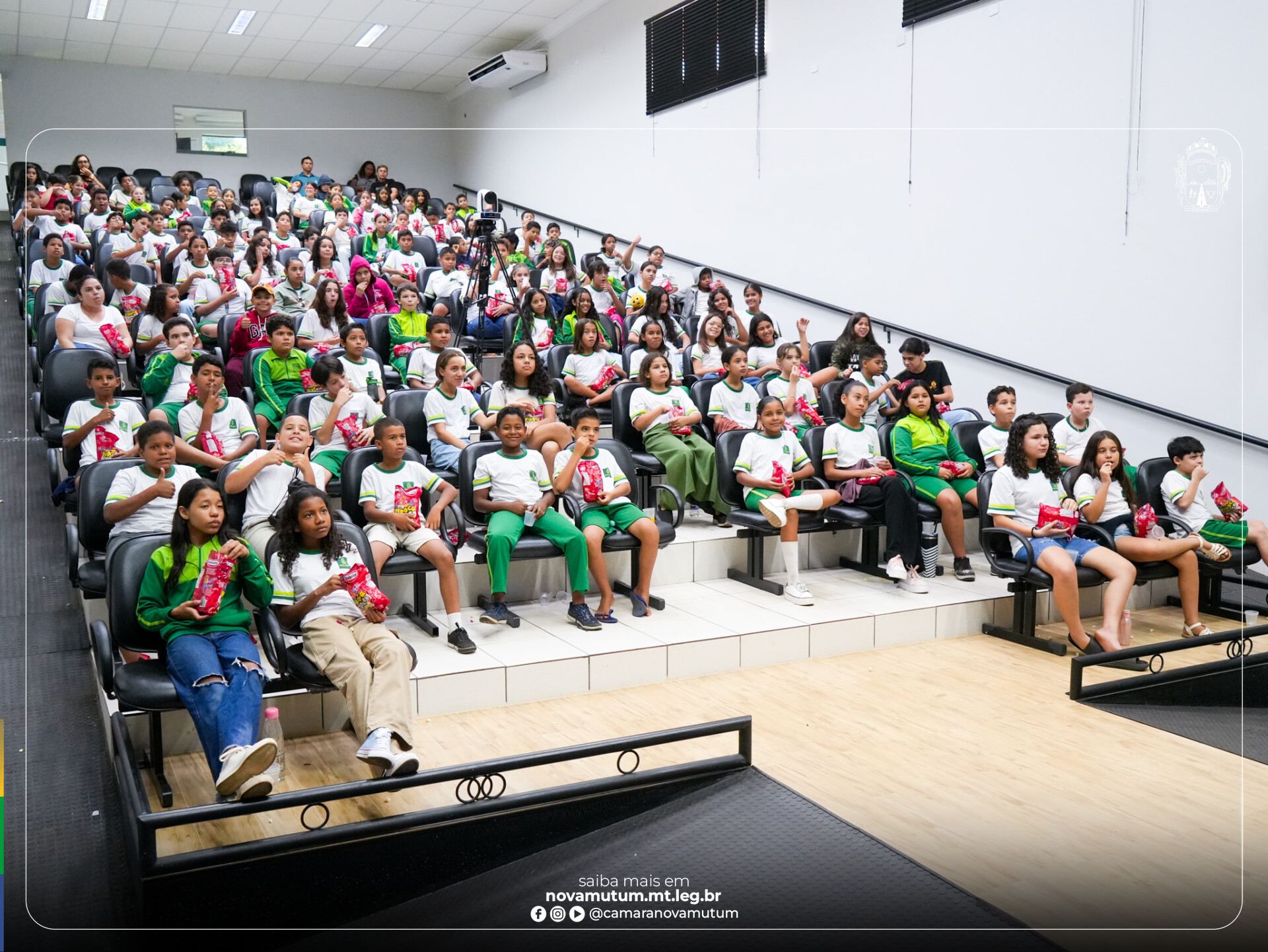 A Câmara Municipal de Nova Mutum recebeu, na tarde desta terça-feira (07), a visita de quatro turmas do 5º ano do Ensino Fundamental da Escola Municipal 4 de Julho, totalizando cerca de 130 alunos. A ação fez parte da conclusão do projeto “Democracia e Cidadania”, desenvolvido pela professora de Ciências Humanas Célia Coeni.