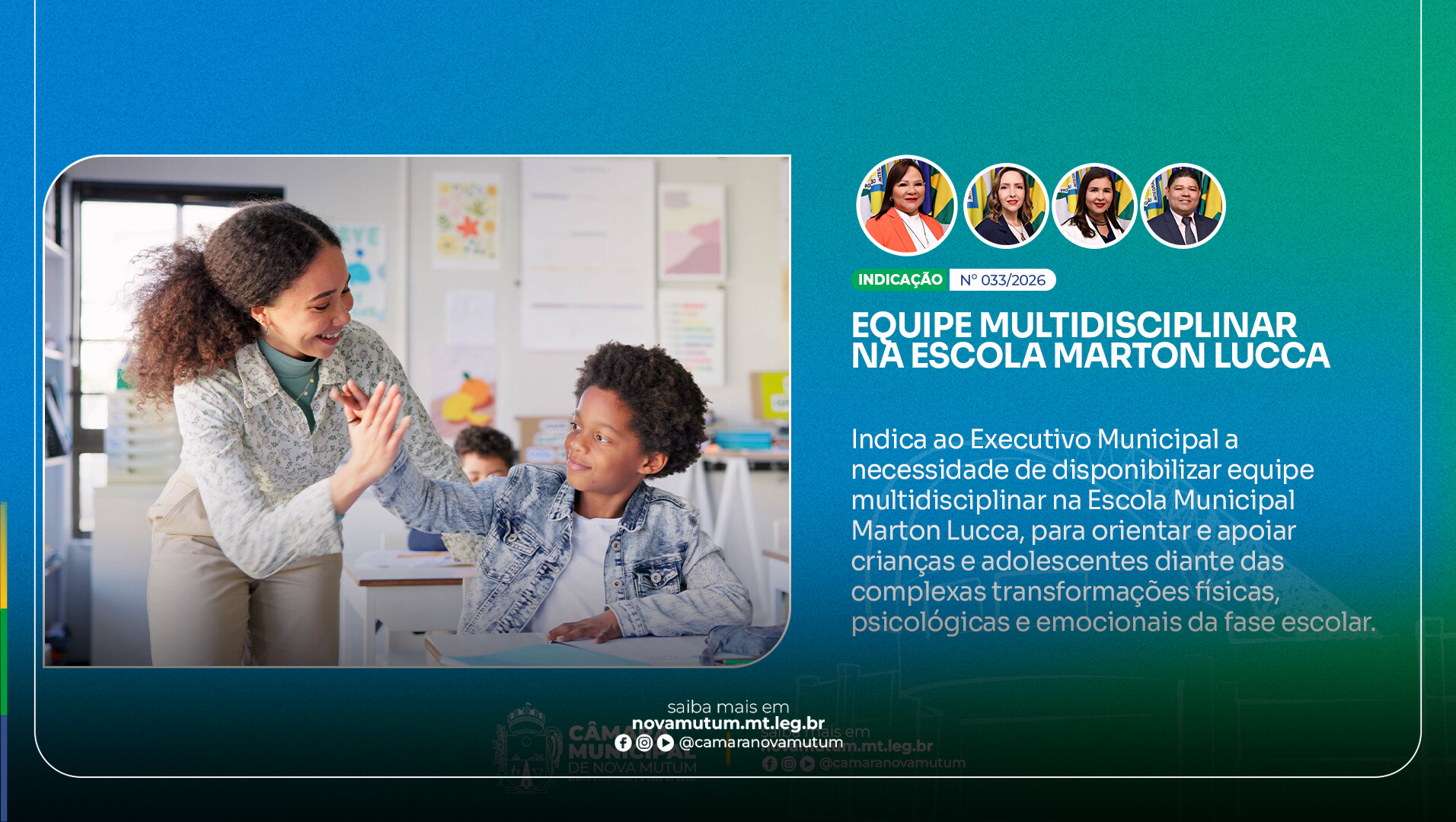 A atuação da Câmara Municipal evidencia seu papel como espaço de escuta e de construção de políticas voltadas ao bem-estar da população mais jovem de Nova Mutum.