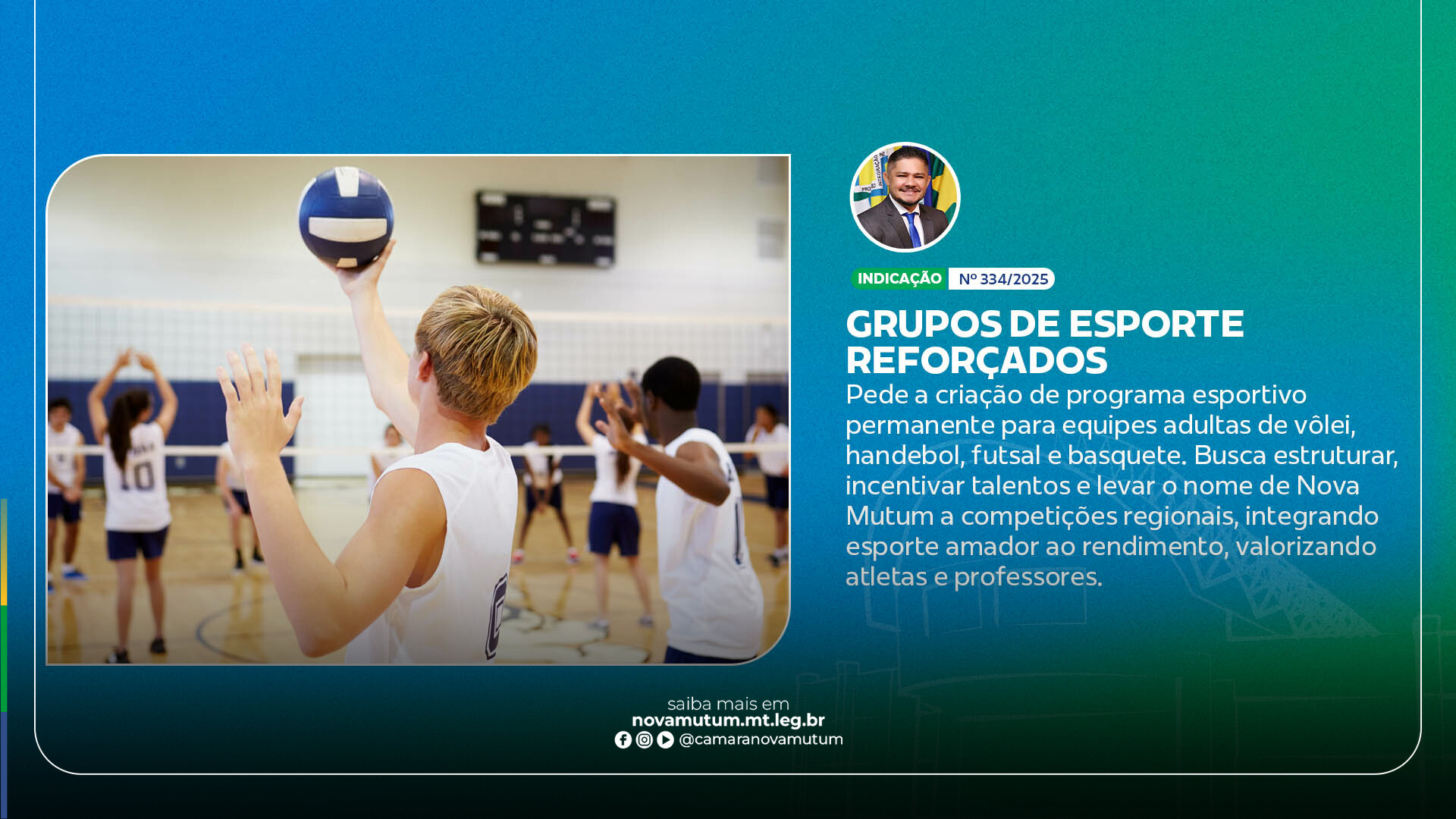 Além de fortalecer o esporte de rendimento, a medida pretende projetar o nome do município em competições regionais e estaduais, gerando orgulho e sentimento de pertencimento na população. O programa também valorizaria técnicos, professores e atletas locais, integrando o esporte amador com o competitivo. A implementação dessa política esportiva consolidaria Nova Mutum como referência regional nas modalidades de quadra, complementando os benefícios sociais do esporte com ganhos em visibilidade municipal. Caberá ao Poder Executivo analisar a viabilidade orçamentária e operacional da proposta, considerando seu potencial de transformação no cenário esportivo local.