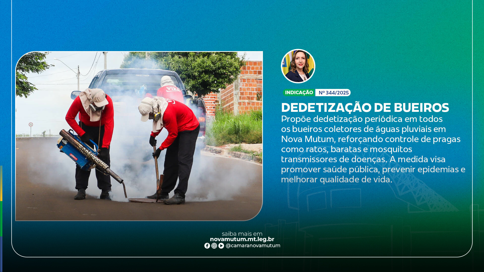 A Câmara de Vereadores de Nova Mutum aprovou por unanimidade, durante a 38ª sessão ordinária desta segunda-feira, 24 de novembro, a Indicação nº 344/2025. A proposta, apresentada pela vereadora Jaiane Santos (PP), sugere ao Poder Executivo a realização de um programa de dedetização em todos os bueiros coletores de águas pluviais do município. A iniciativa, assim como as demais indicações legislativas, segue agora para análise de viabilidade por parte do Executivo, que decidirá sobre sua eventual implementação.