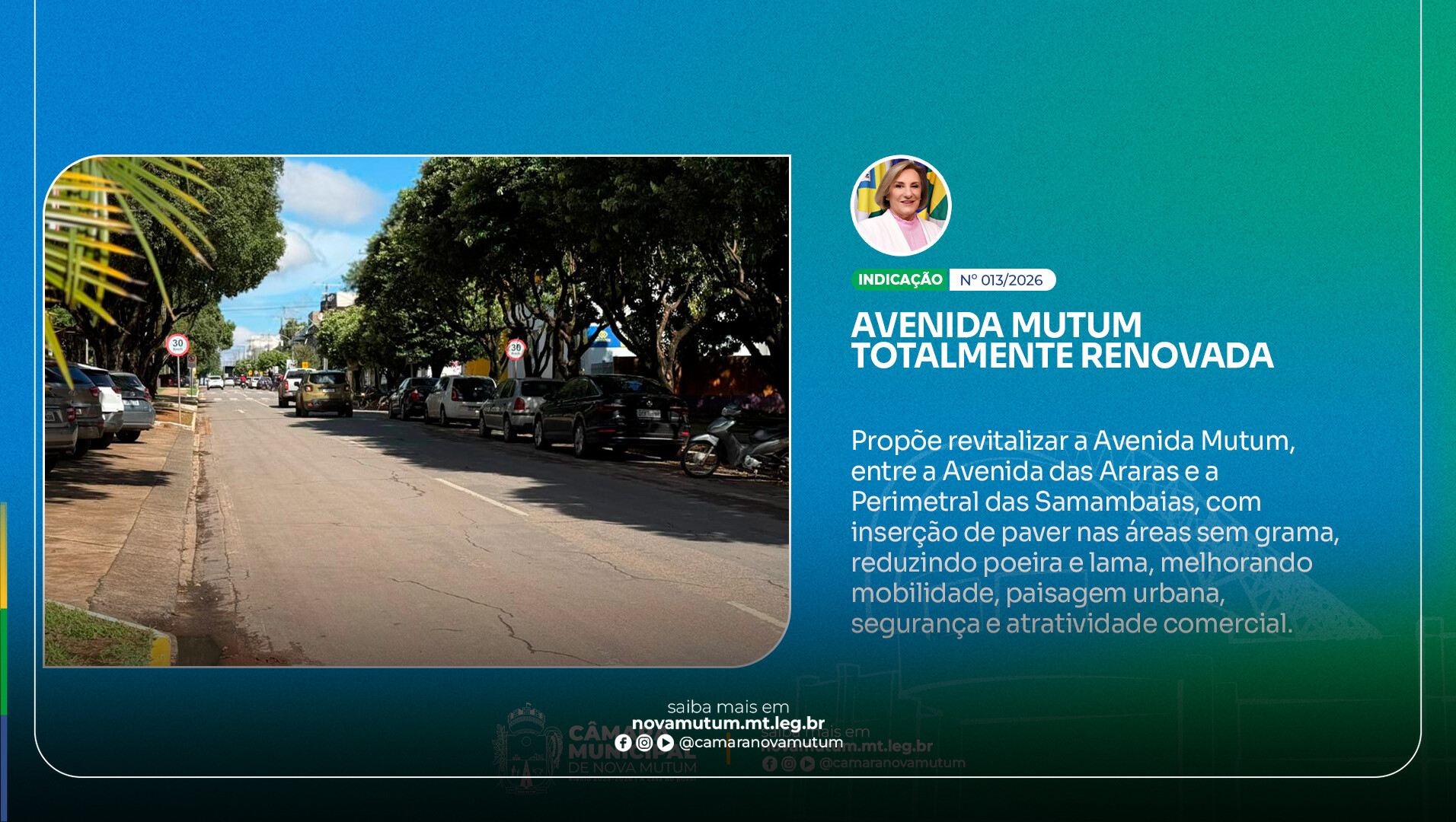 Embora não tenha caráter impositivo, a indicação evidencia a atuação da Câmara na proposição de melhorias estruturais que dialogam com o crescimento urbano e o fortalecimento do centro de Nova Mutum.