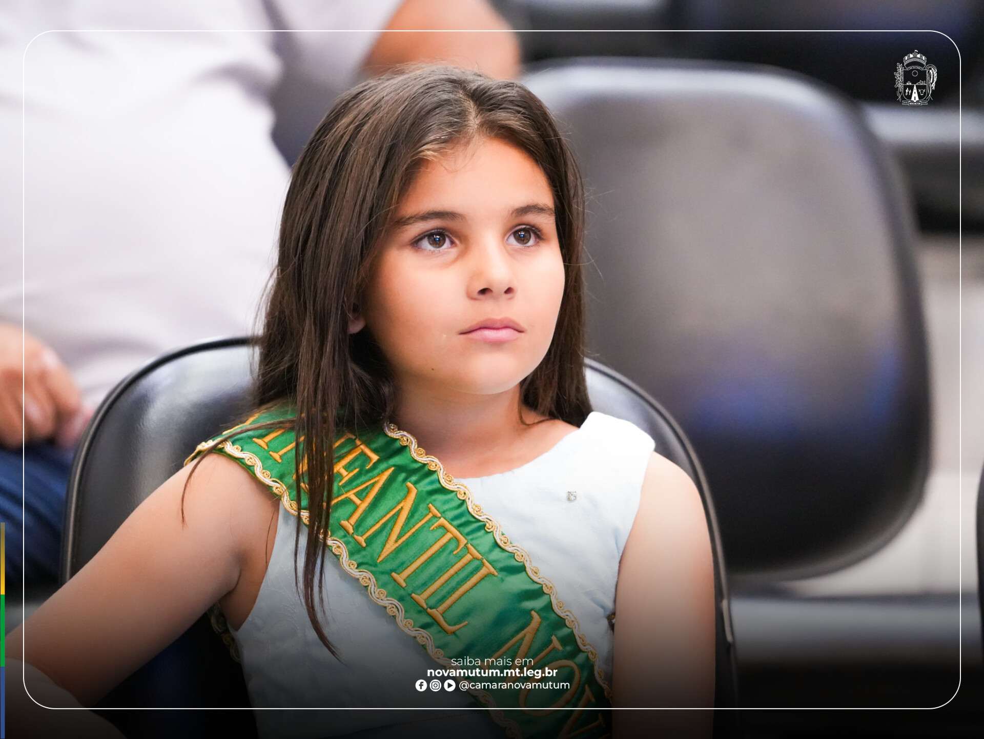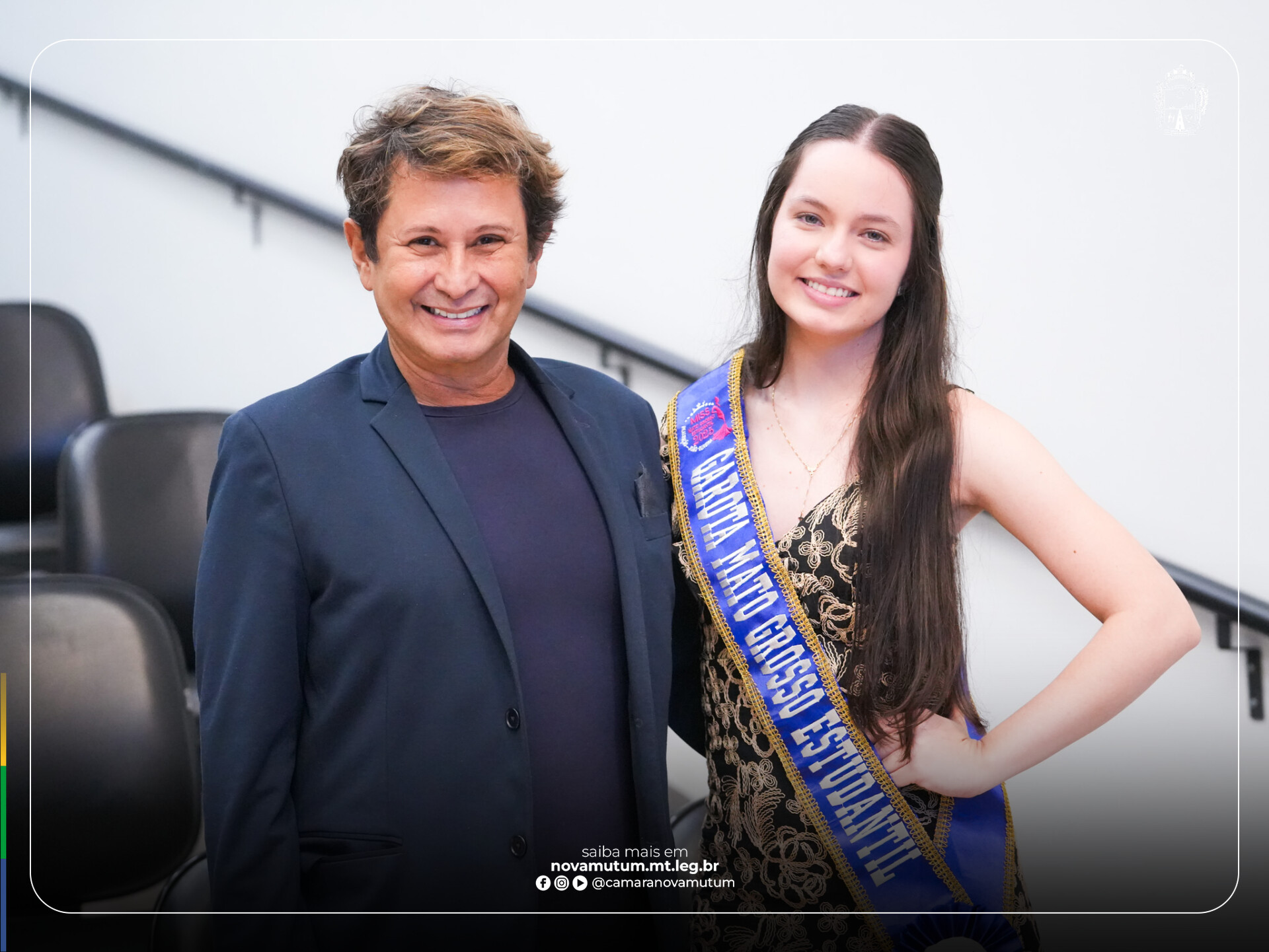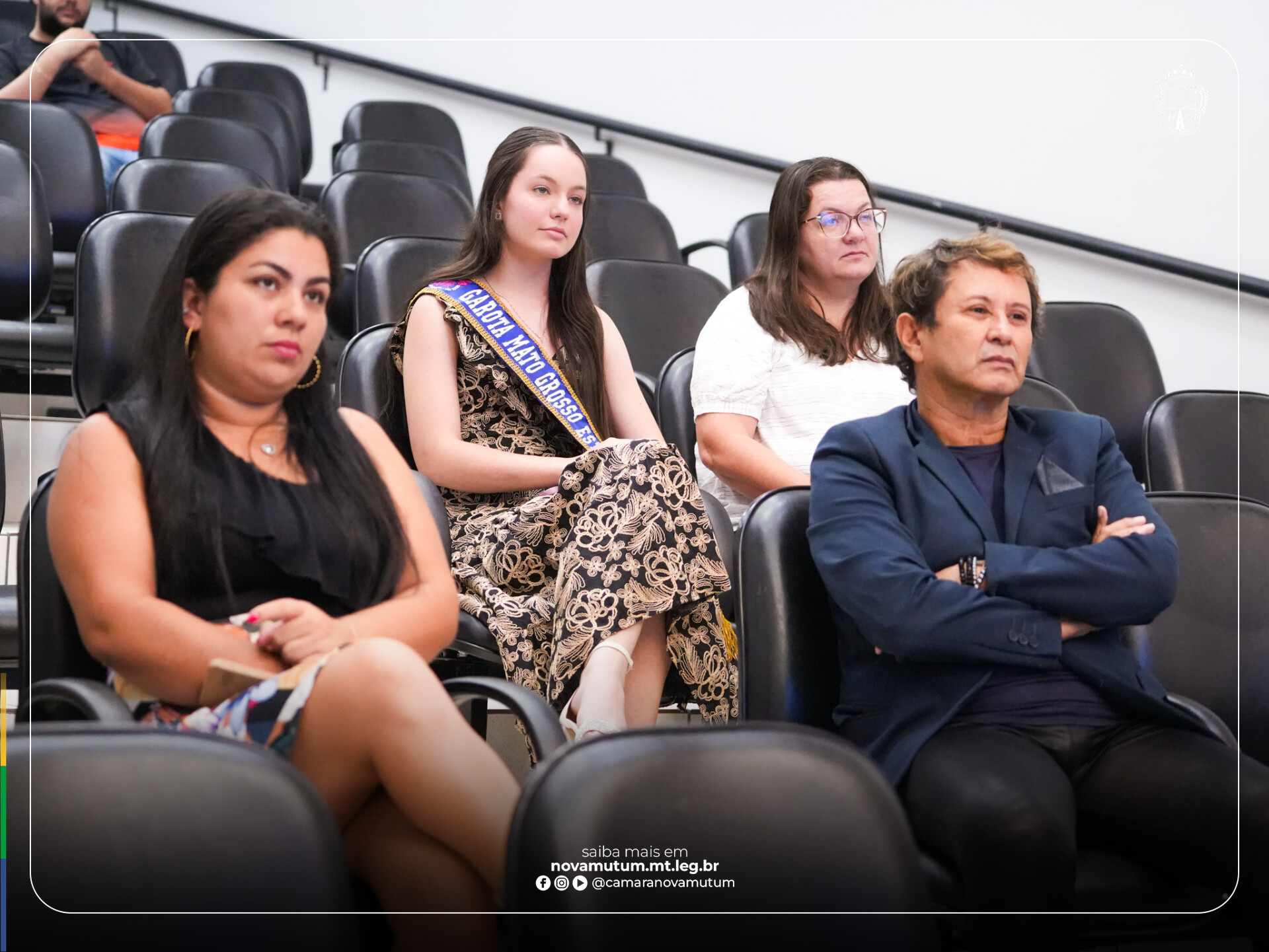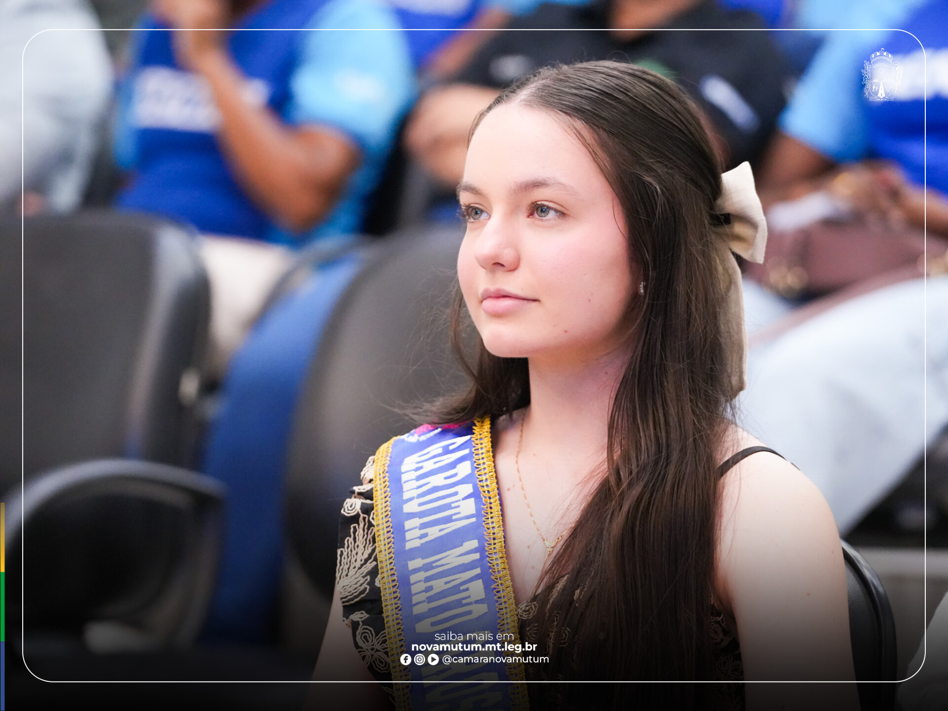 Durante a sessão, estiveram presentes os pequenos vencedores do Miss e Mister Estudantil Nova Mutum Infantil 2025: Kauã Soares Morisso, de 10 anos, aluno da Escola Lúcia Faccio Tasca, e Isabely da Silva Medeiros, de 8 anos, estudante da Escola 4 de Julho. Também integrou a comitiva Isadora Chemin, eleita Miss Estudantil Nova Mutum 2025 e atual Miss Estudantil Mato Grosso, título no qual conquistou o segundo lugar em nível estadual.