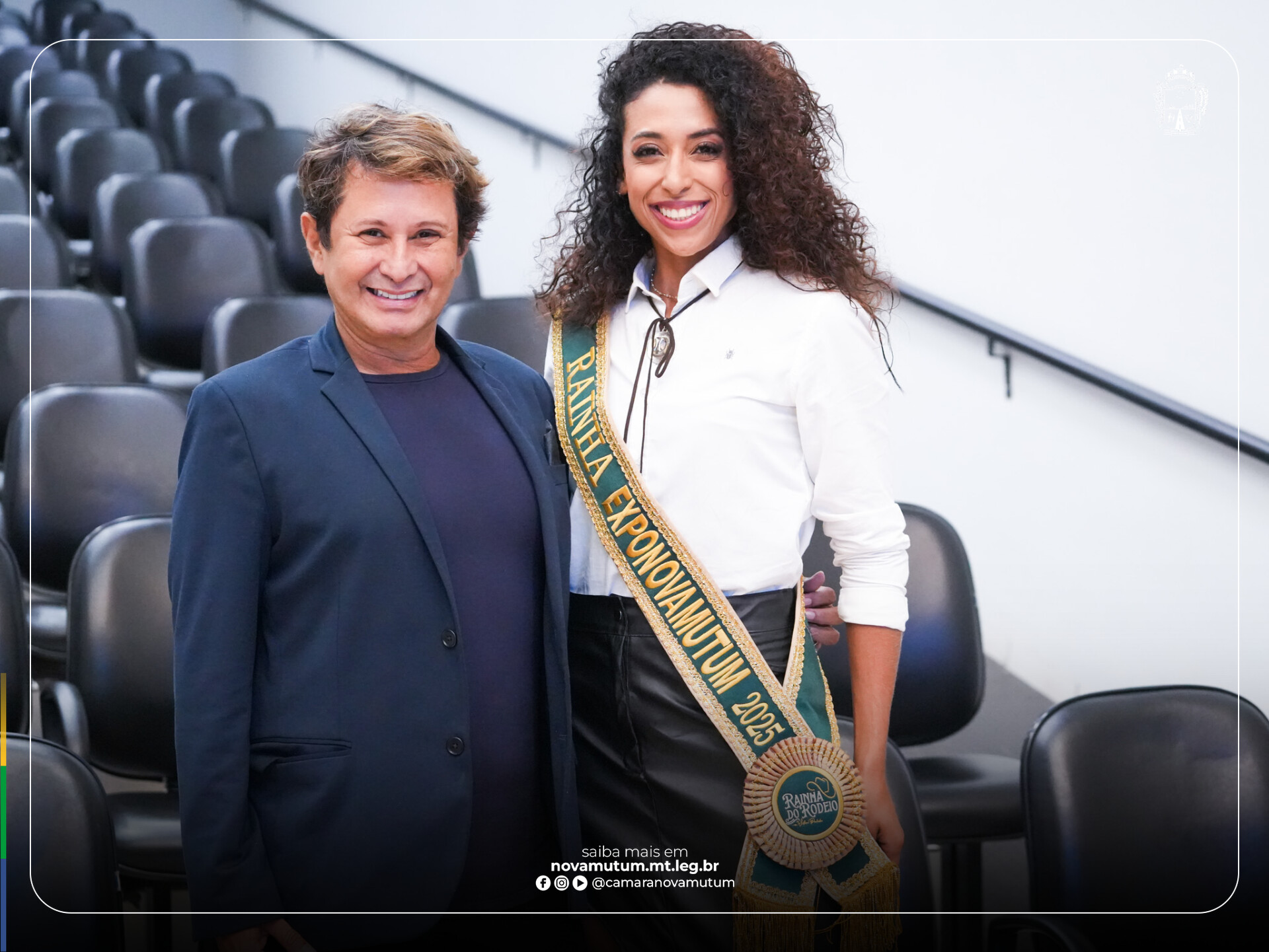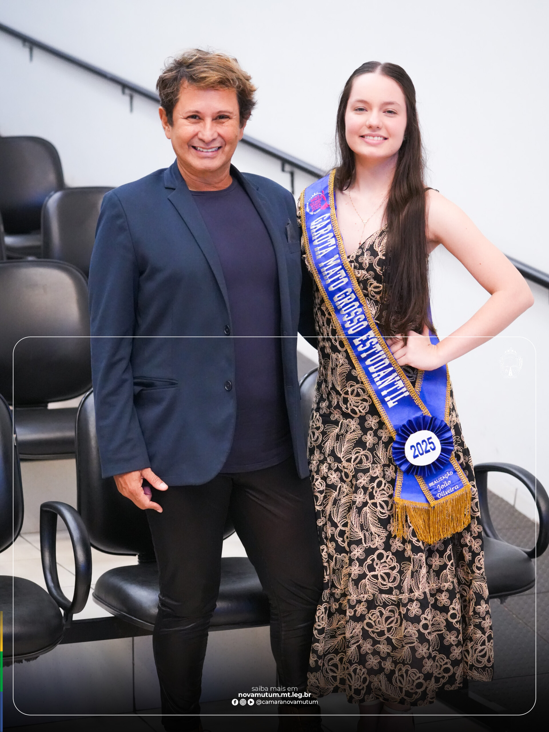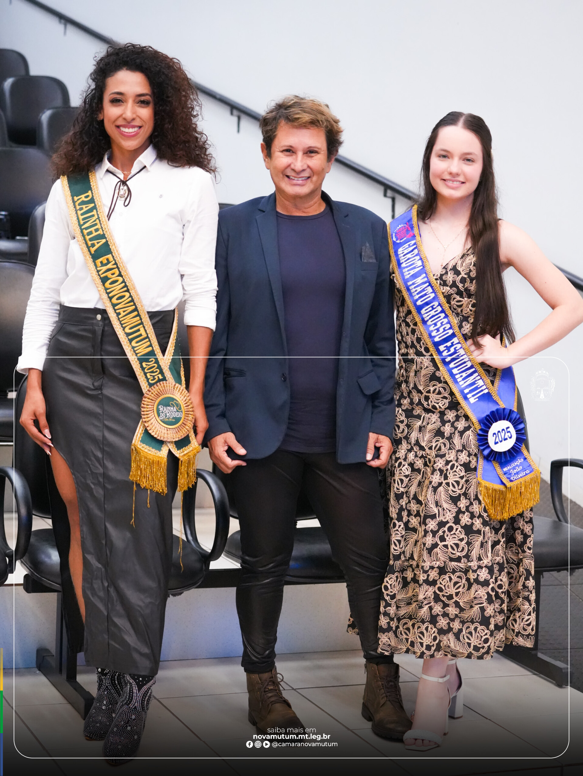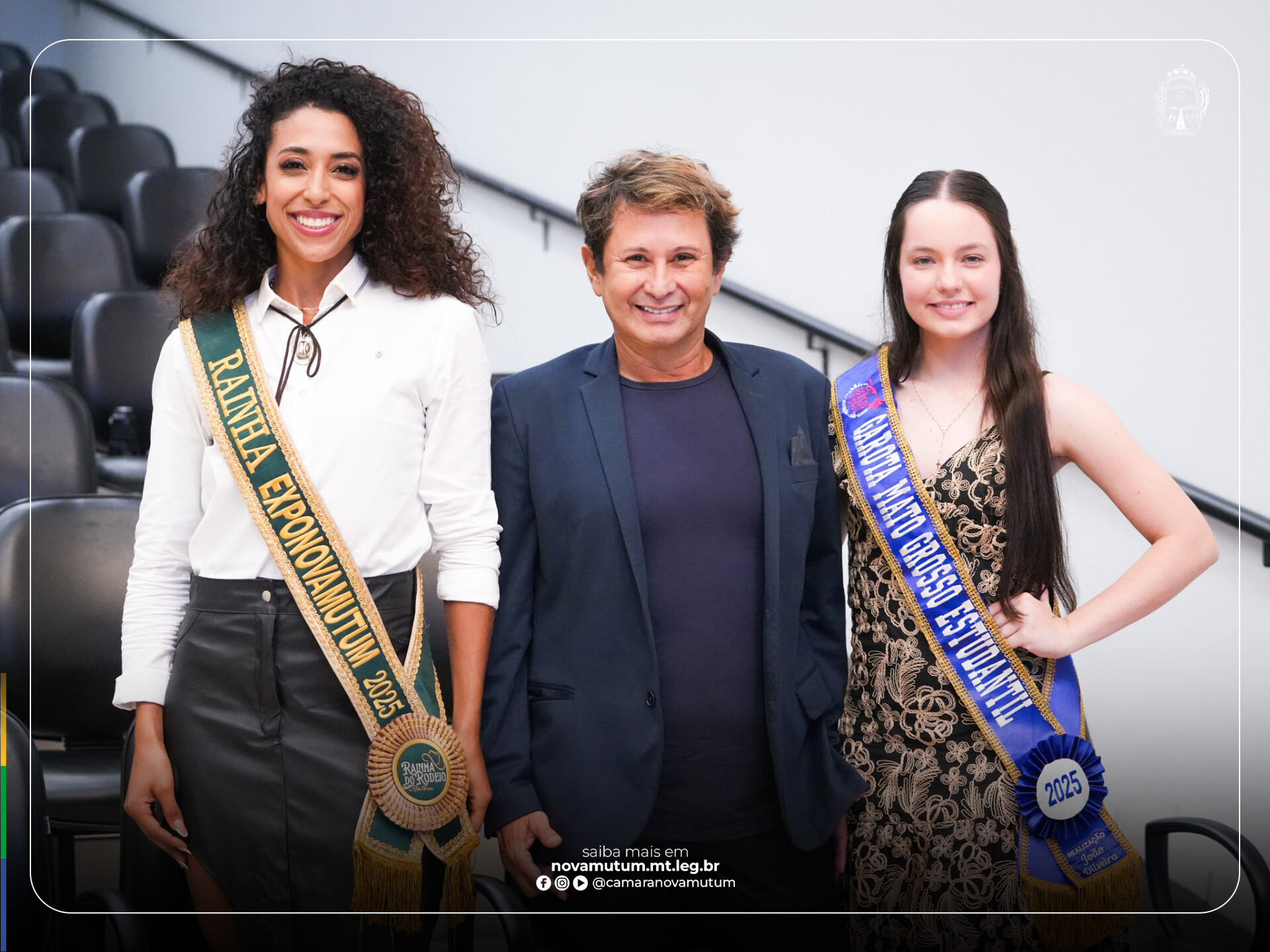 Durante a sessão, estiveram presentes os pequenos vencedores do Miss e Mister Estudantil Nova Mutum Infantil 2025: Kauã Soares Morisso, de 10 anos, aluno da Escola Lúcia Faccio Tasca, e Isabely da Silva Medeiros, de 8 anos, estudante da Escola 4 de Julho. Também integrou a comitiva Isadora Chemin, eleita Miss Estudantil Nova Mutum 2025 e atual Miss Estudantil Mato Grosso, título no qual conquistou o segundo lugar em nível estadual.
