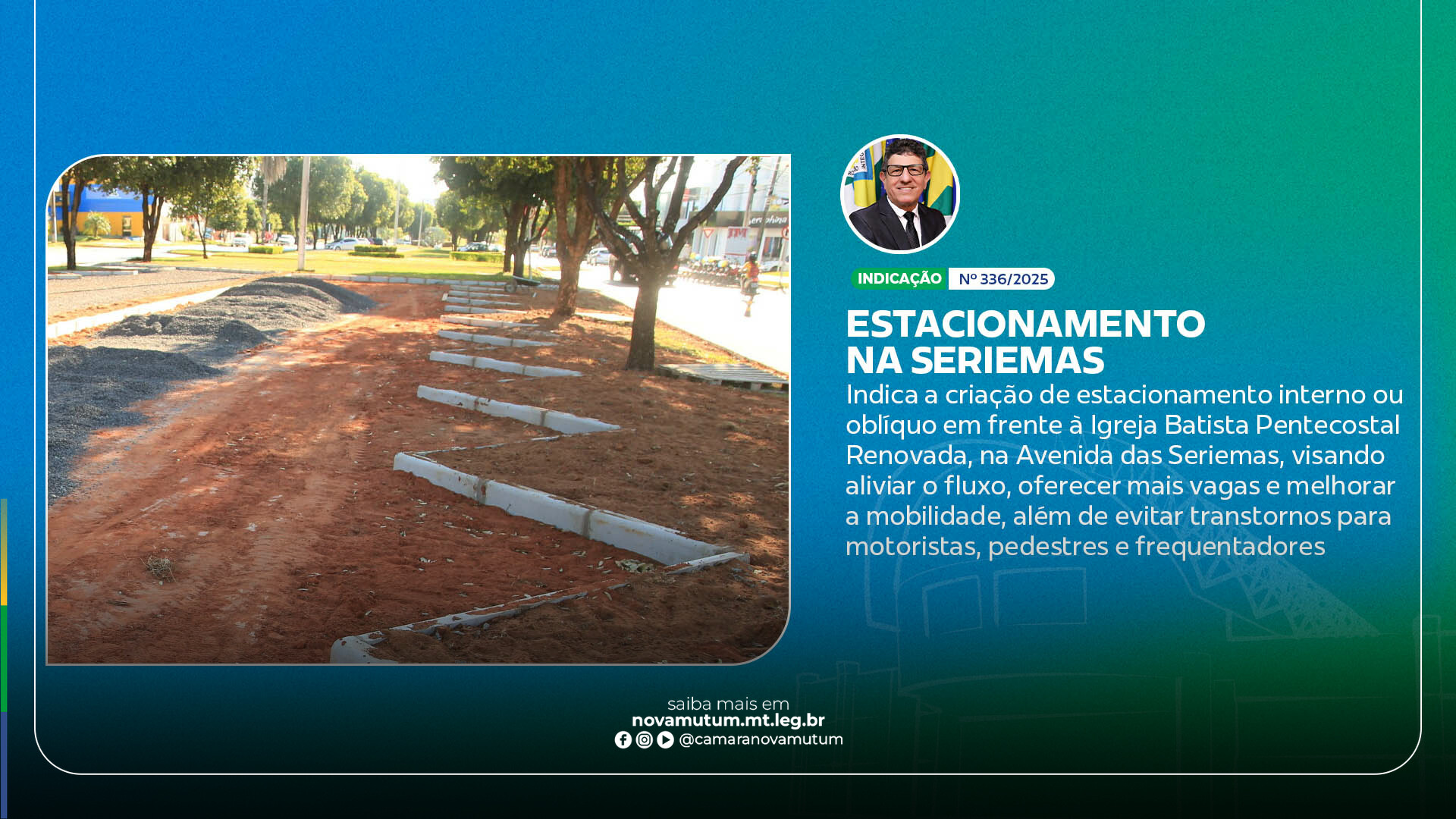 Além de beneficiar usuários específicos, a medida contribuiria para a melhoria geral da mobilidade urbana, organizando o espaço público e evitando que veículos estacionem em locais inadequados. A proposta prevê a utilização dos canteiros centrais da avenida, preservando assim o passeio público para a circulação de pedestres e mantendo a estética viária. Com esta sugestão, a Câmara demonstra seu compromisso em buscar soluções para os desafios urbanos do município. A proposta segue agora para análise do Executivo, que avaliará a viabilidade técnica e legal da implantação do estacionamento, considerando seu potencial de melhorar a qualidade de vida na Avenida das Seriemas.